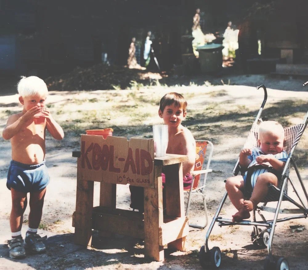Featured in the photo - Jeff's first signage project and his brothers Dyne (left) and Greg (right).